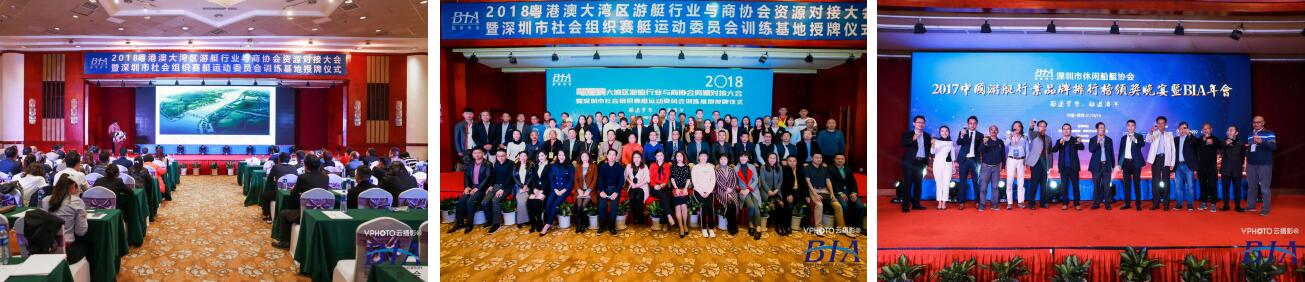 2018年1月18日,深圳休閑船艇協會(英文簡稱“BIA”)2017年會員大會、第一屆理事會第六次會員全體會議暨第二屆理、監事會換屆大會,2018粵港澳大灣區游艇行業與商協會資源對接大會暨深圳市社會組織賽艇運動委員會訓練基地授牌儀式在深圳市羅湖區富臨大酒店圓滿舉辦。