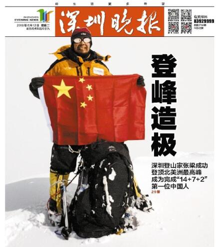 北京時間 6 月 8 日 9 時 30 分,深圳登山家張梁成功登頂北美洲最高峰迪納利峰,成為首位完成 "14+7+2"(登頂全世界所有 14 座 8000 米以上山峰和 7 座七大洲最高峰,并以探險方式徒步滑雪抵達南北極點)這一人類登山探險終極夢想的中國人,也是繼韓國人樸英碩后世界上完成這一壯舉的第二人。
