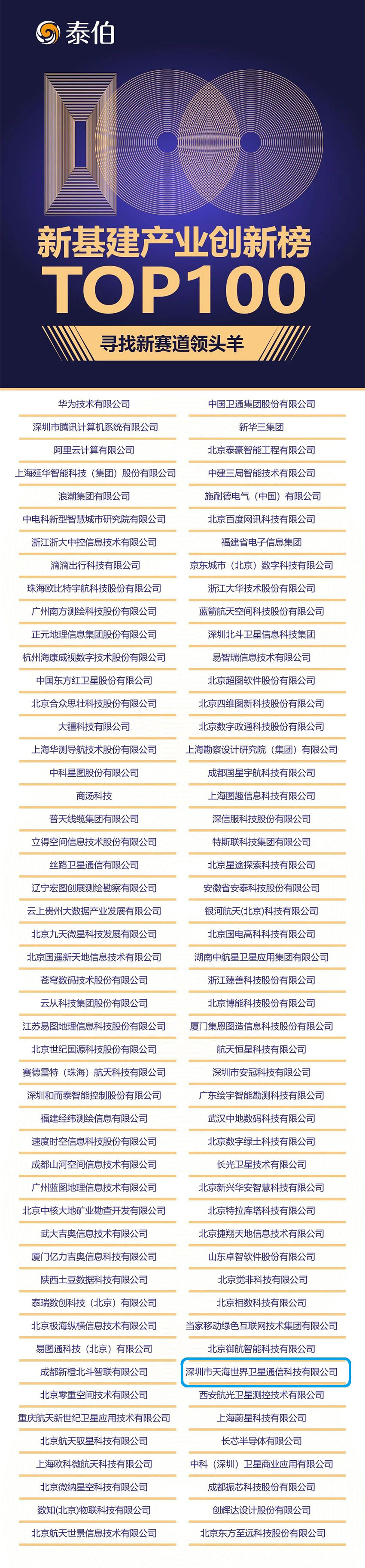 8月18日,WGDC2020全球地理信息開(kāi)發(fā)者大會(huì)開(kāi)幕,在開(kāi)幕式與領(lǐng)袖峰會(huì)上,泰伯網(wǎng)重磅發(fā)布了“新基建產(chǎn)業(yè)創(chuàng)新榜TOP100”。來(lái)自衛(wèi)星互聯(lián)網(wǎng)、新型智慧城市、自然資源信息化三大領(lǐng)域的100家企業(yè)獲此殊榮,天海世界衛(wèi)星通信榮登榜單。